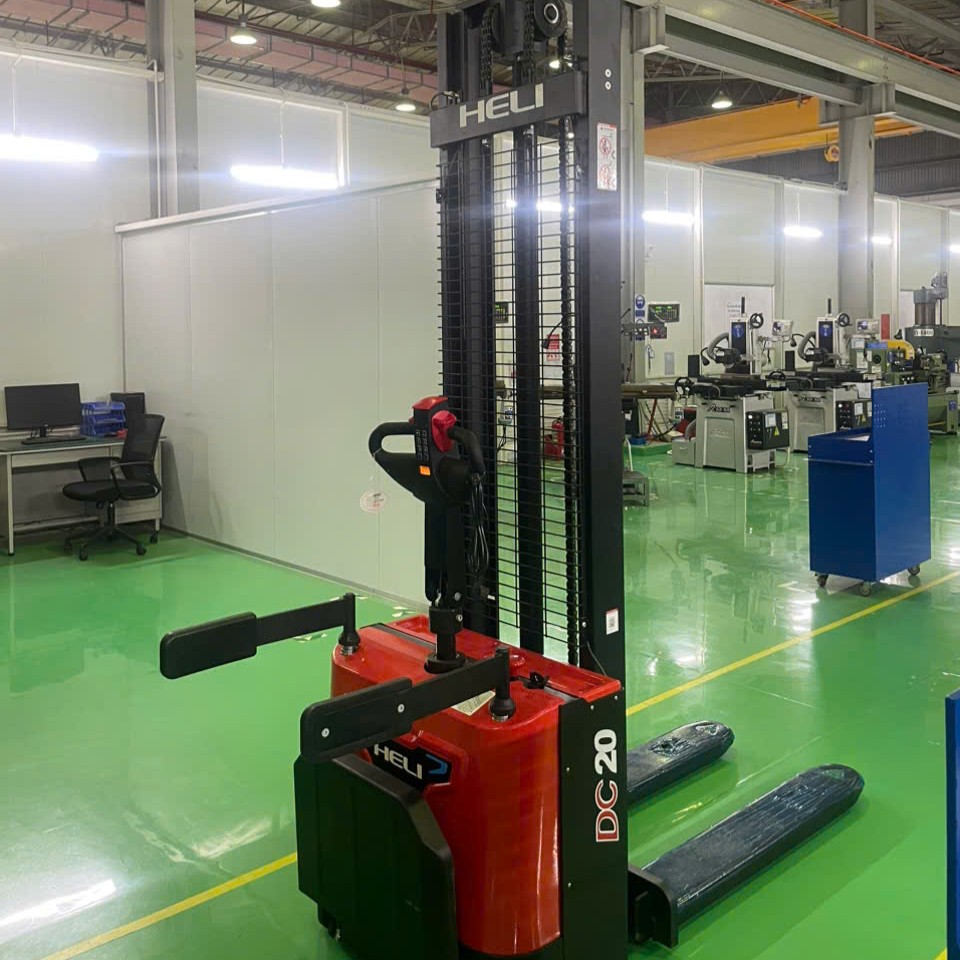 Xe nâng tay điện cao HELI CDD20-TF, tải 2 tấn. Kết hợp vận chuyển và nâng hàng lên kệ. Phù hợp kho trung bình và lớn, kệ cao. Vận hành đơn giản, an toàn, chi phí vận hành thấp.
